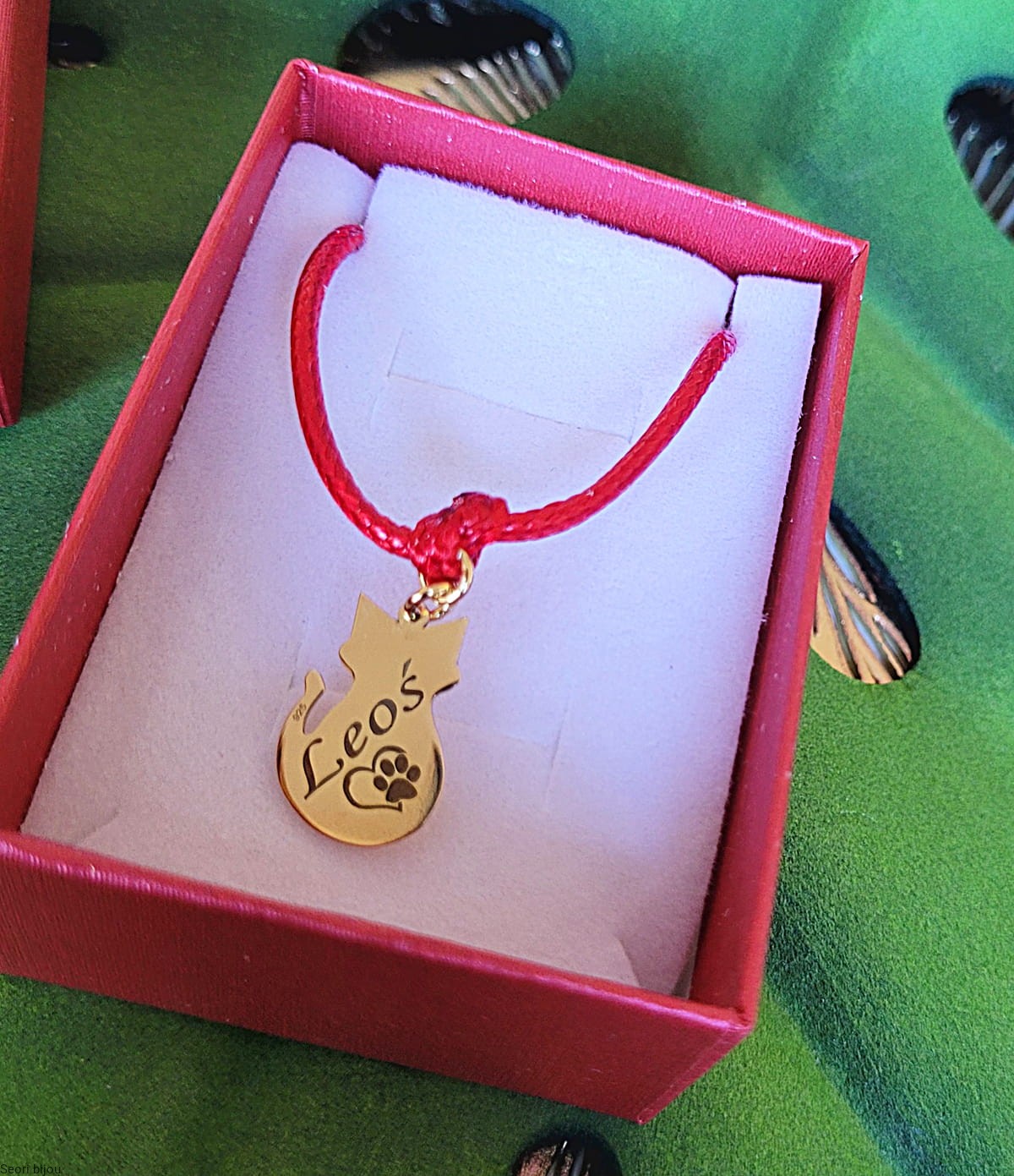 Pozłacana srebrna bransoletka na sznurku kotek z grawerem