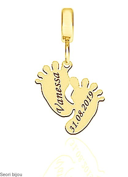 Pozłacany charms beads - zawieszka stópki z grawerem