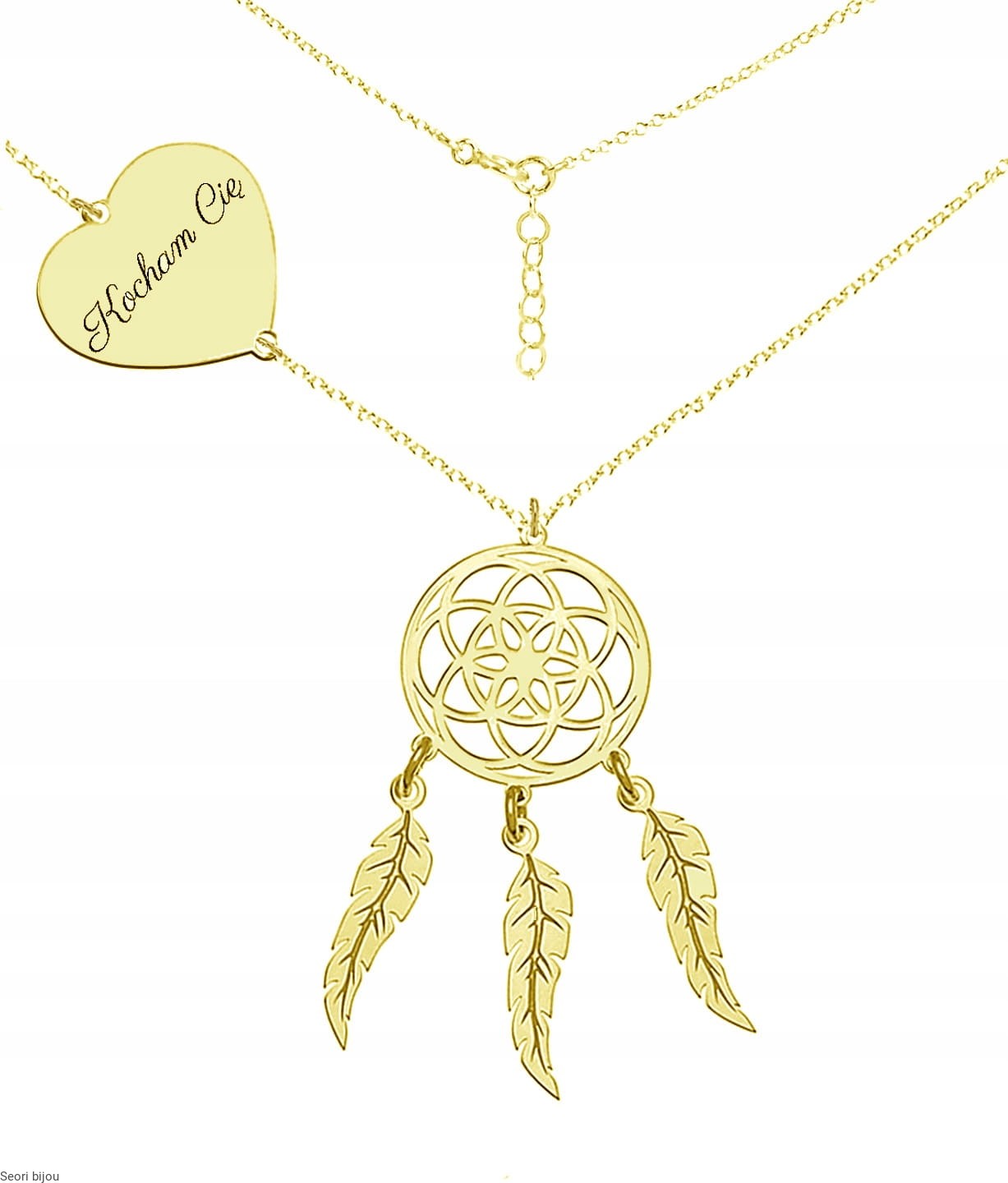 Pozłacany naszyjnik łapacz snów z sercem i z grawerem