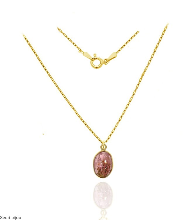 Pozlacany naszyjnik z naturalnym turmalinem różowym
