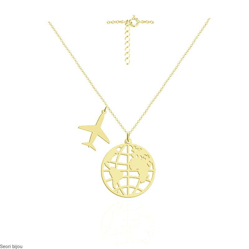 Pozłacany srebrny naszyjnik Mapa Świata Kula Ziemska z samolotem