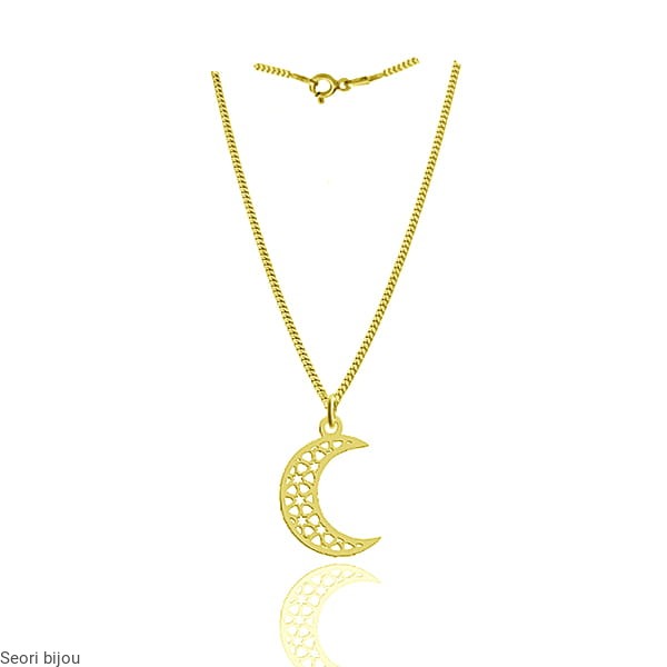 Pozłacany srebrny naszyjnik księżyc ażurowy