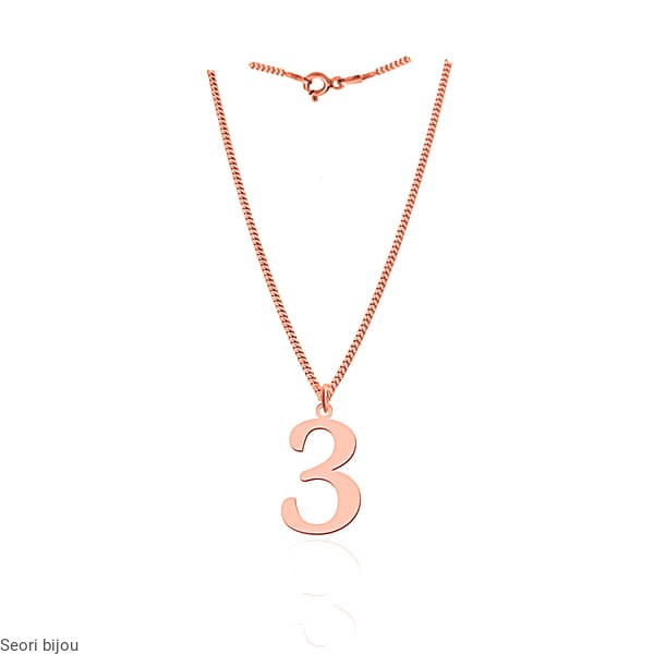 Pozłacany srebrny naszyjnik z cyferką 3 -numerologia rose gold