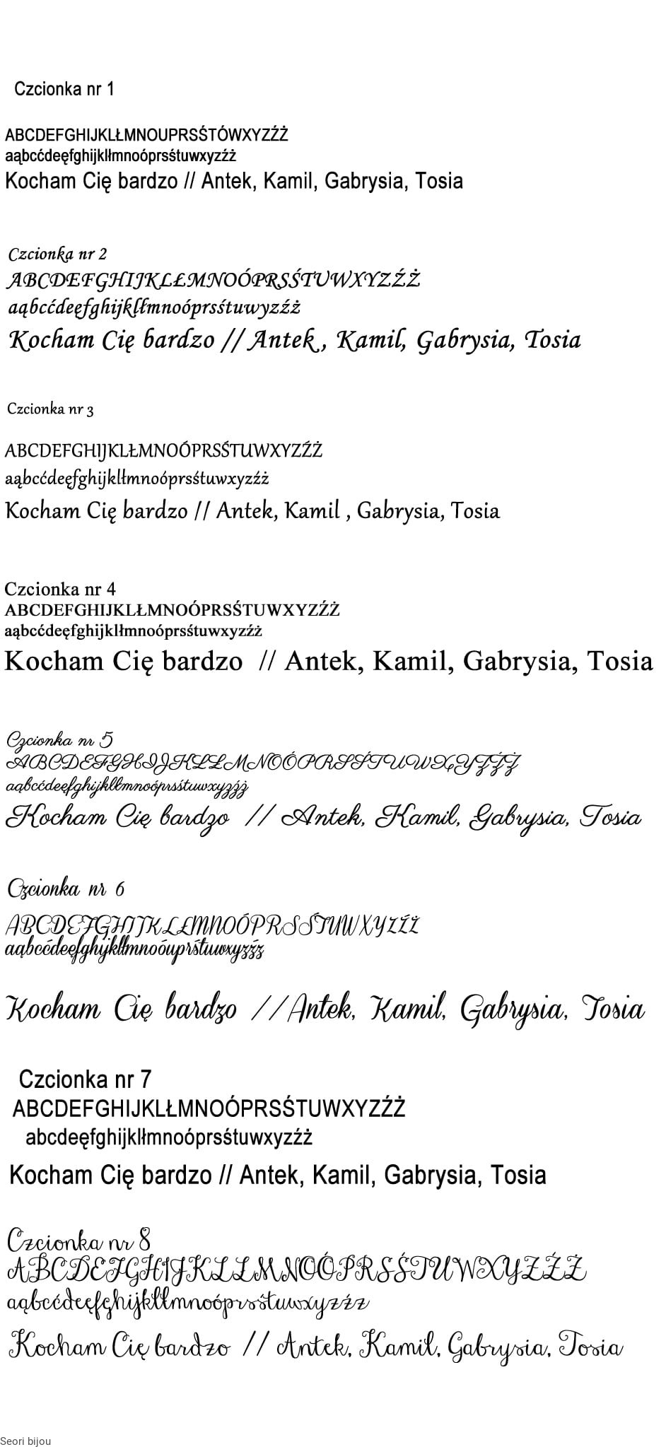 - czcionka do wyboru z naszej galerii zdjęć