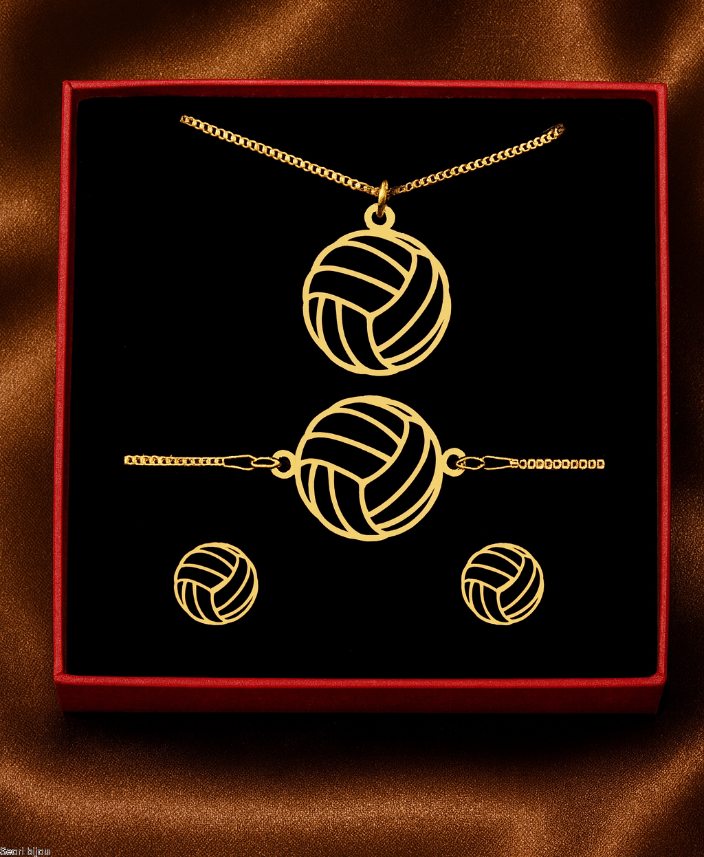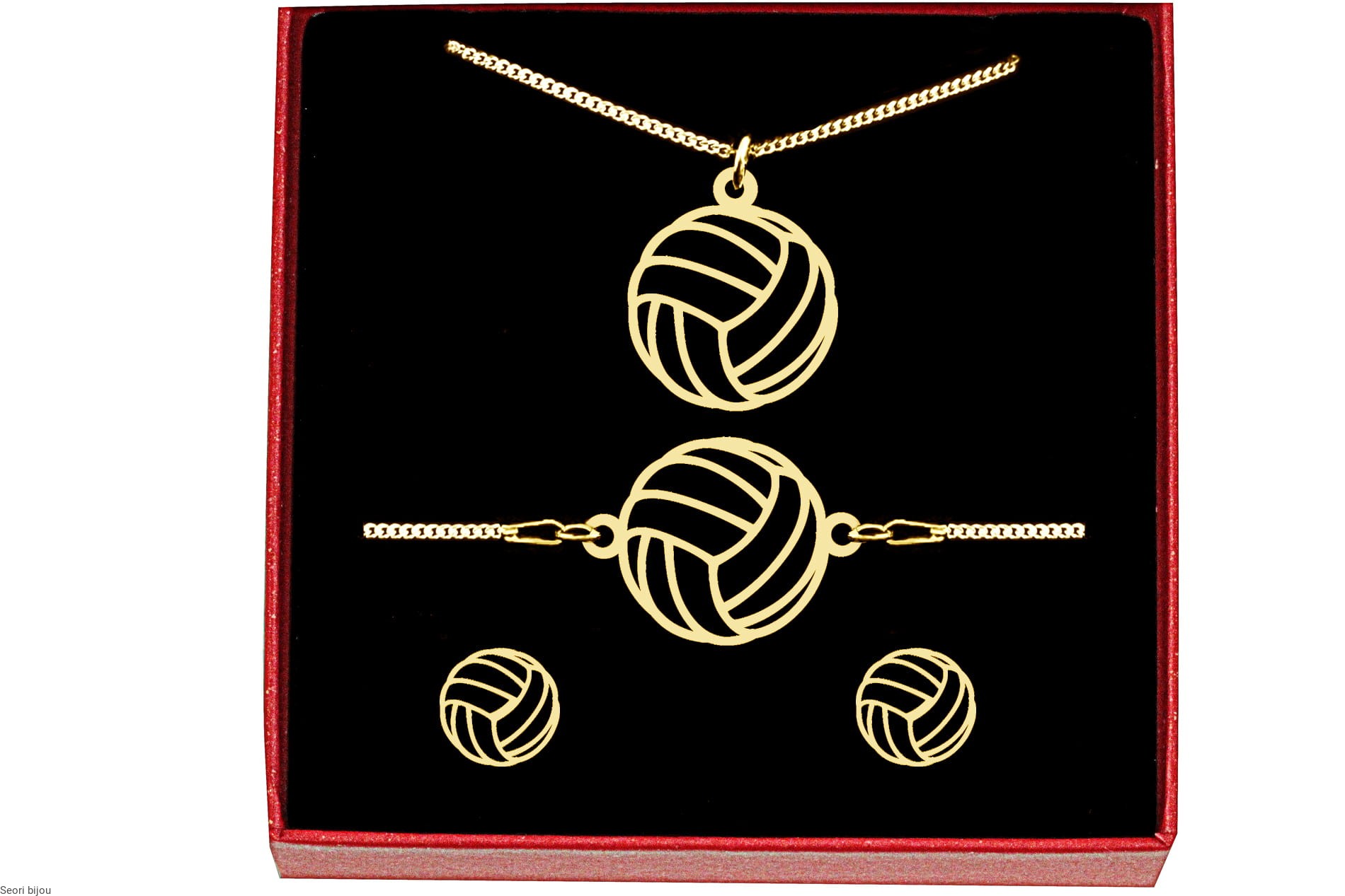 Złoty komplet biżuterii siatkówka piłka do siatki kibic prezent